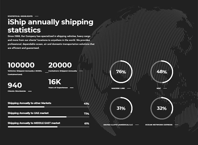 Iships are an logistics company that is working on the model of shipping vehicles across the globe. Their main focus is on shipping the vehicle from one place to another and getting the clients a better and more cost-effective business model for the shipping of their vehicles, the catch here is the cost efficiency and the pricing which comes along with the shipping. Their tagline s it say the cheap options available for the shipping of your favorite vehicles to target the audience directly with the pricing.